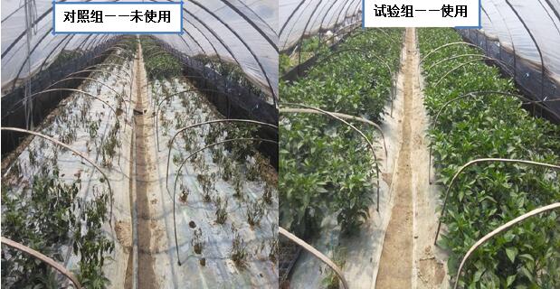 使用万慧源土壤改良菌剂后,辣椒死棵现象明显减少;植株粗壮、叶片浓绿;病害症状消失;产量较正常地块提高 20%。